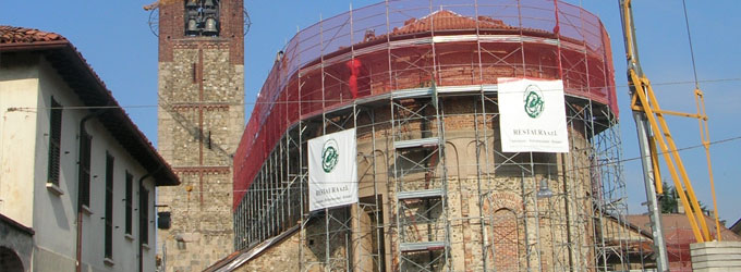 Restauro conservativo della copertura e consolidamento di tutte le strutture lignee principali e secondarie della Parrocchia Santo Stefano di stile romanico situata nel centro della città di Vimercate, nella zona immediatamente vicina all’antico castrum romano.